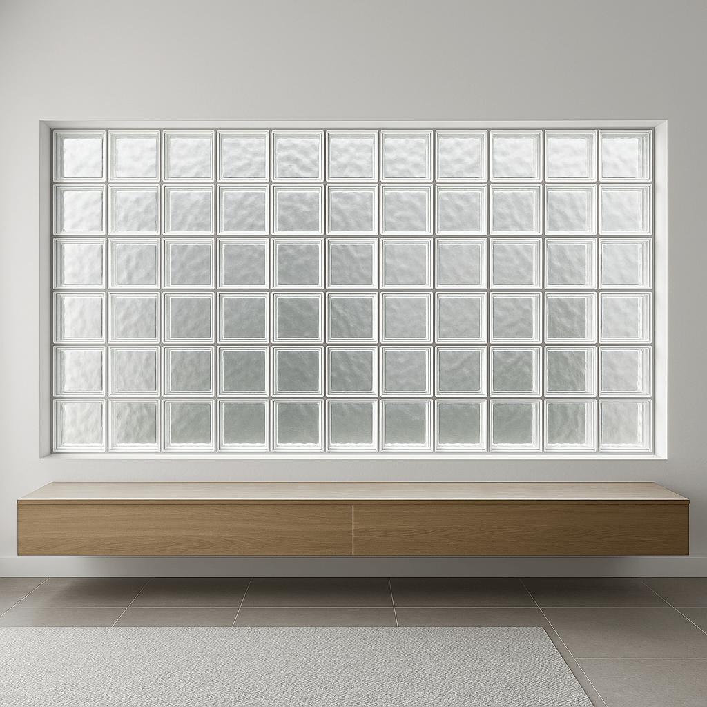 Vidrio Block en versiones básico y decorado. Piezas translúcidas, resistentes y estéticas para muros, divisiones y tragaluces en interior y exterior.