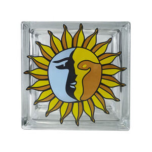 Vidrio block decorado soluna Index Internacional que permite la entrada de luz natural a cualquier espacio interior o exterior como ventanas, muros, losa, piso, etc. Sus medidas son 19 x 19 x 8 cm.