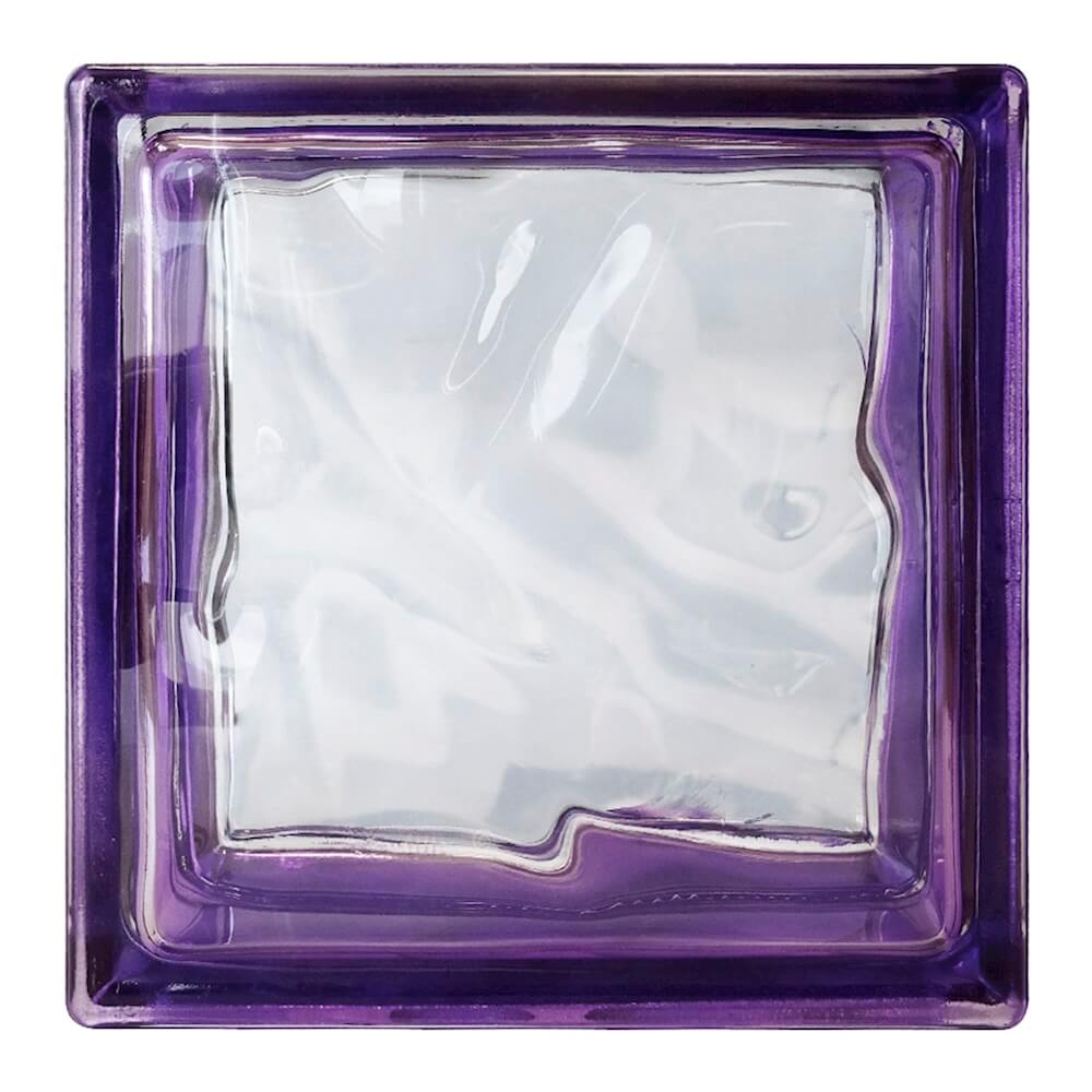 Vidrio block de color morado Index Internacional que permite la entrada de luz natural a cualquier espacio interior o exterior como ventanas, muros, losa, piso, etc. Sus medidas son 19 x 19 x 8 cm.