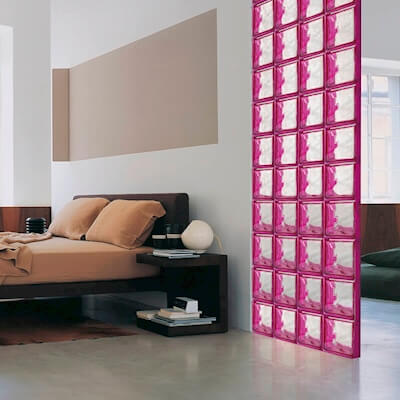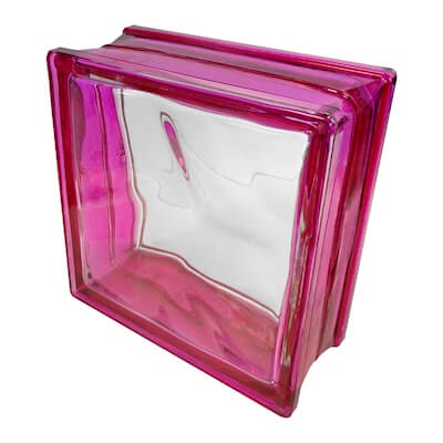 Vidrio block de color rosa mexicano Index Internacional que permite la entrada de luz natural a cualquier espacio interior o exterior como ventanas, muros, losa, piso, etc. Sus medidas son 19 x 19 x 8 cm.